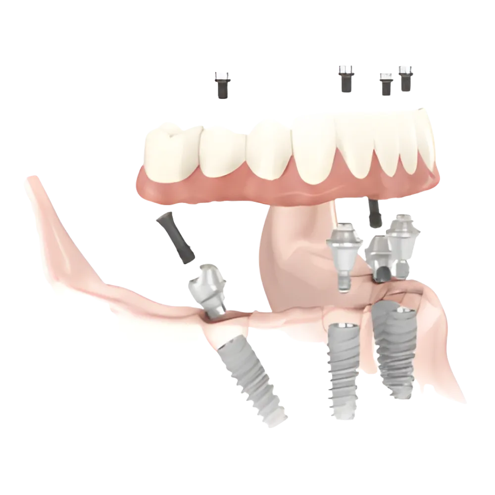 Is custom designed to fix onto 4-6 implants per arch.
